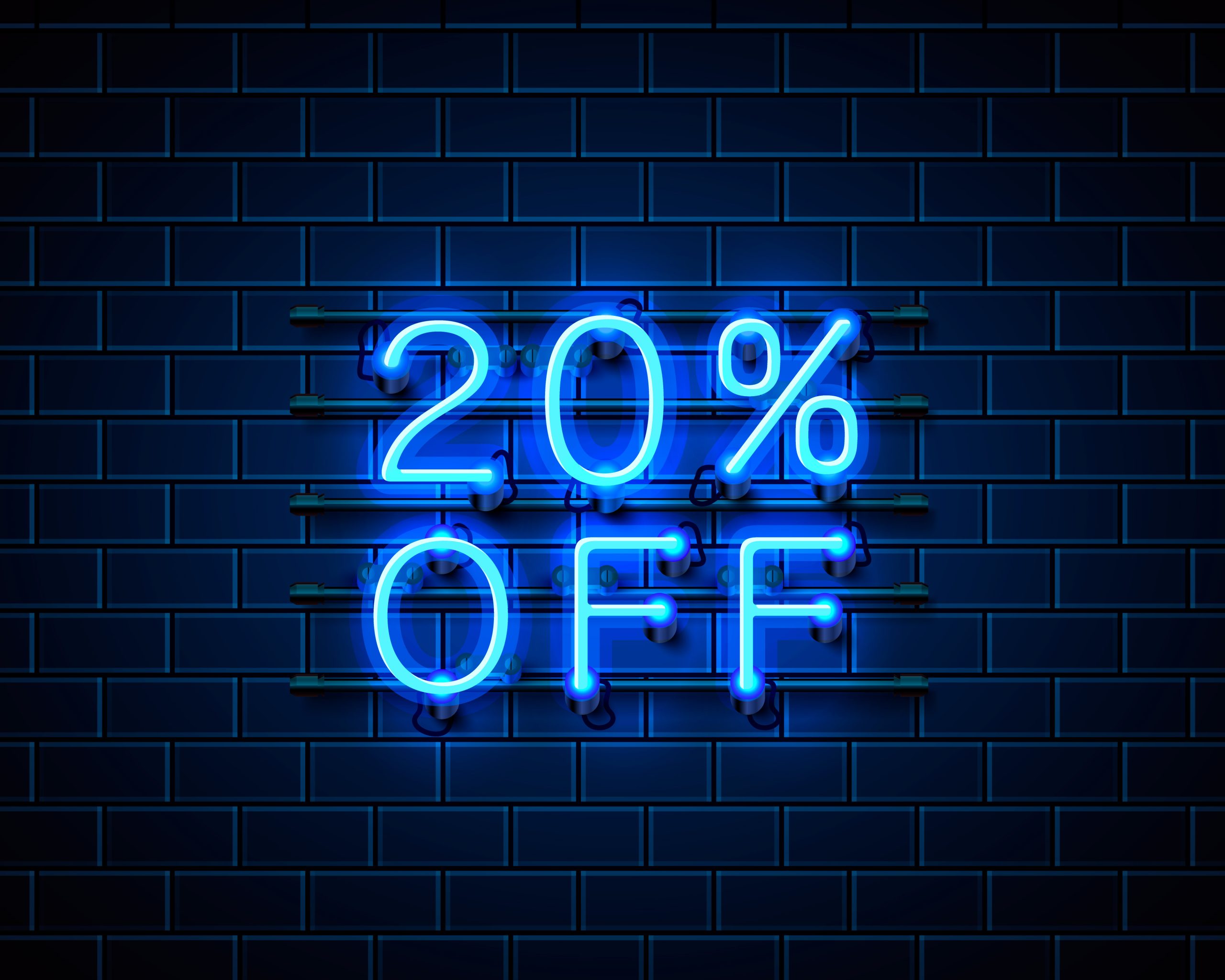 Neon 20 off text banner.